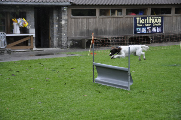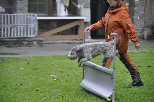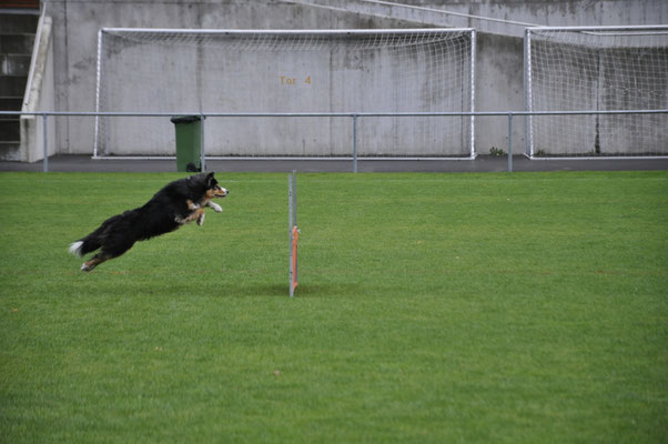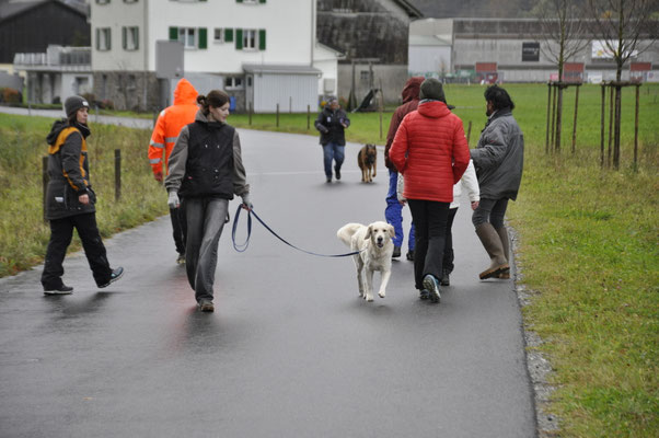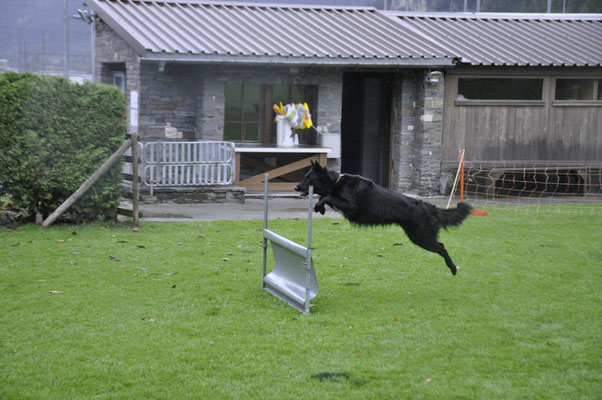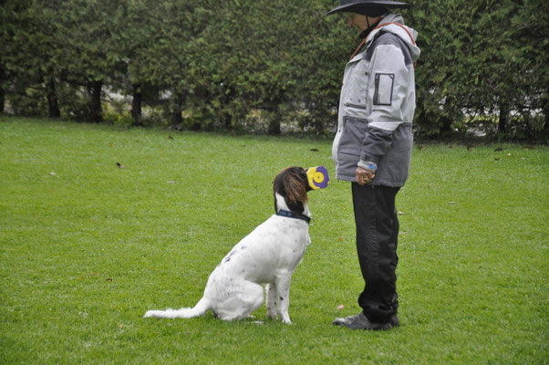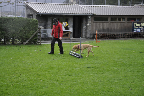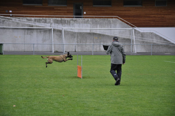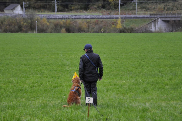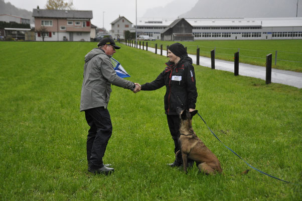 Am Nachmittag traten drei Teams zur Einsteigerprüfung an, welche von Bewerter Werner H. Zbinden abgenommen wurde. Eine Prüfung mit kurzen Abläufen, die dazu dienen soll, die Freude am genauen Arbeiten mit den Hunden zu fördern.