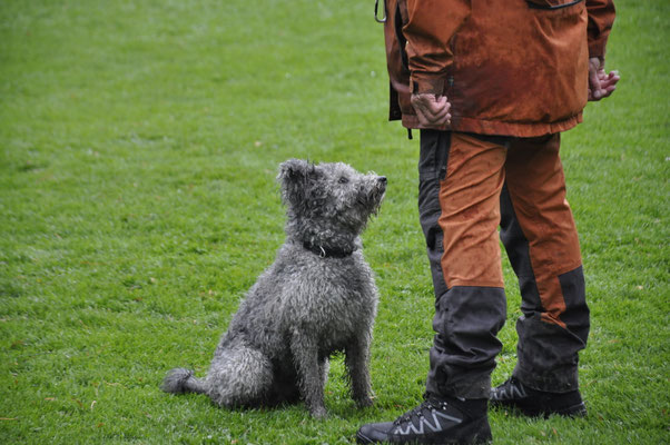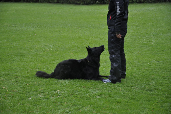 Nach Rückkehr auf den Trainingsplatz wurden auch die Abteilungen „Unterordnung„ und „Führigkeit“ geprüft. Sehr genaues Arbeiten und gutes Teamwork zwischen Mensch und Hund war hier gefragt. Der Hund soll mit Freude bei der Arbeit sein und das mit grosser Aufmerksamkeit gegenüber dem Hundeführer zeigen.