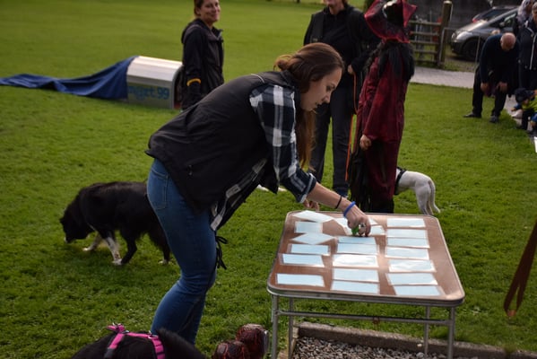 Nach Absolvieren des letzten Postens begaben sich die Teilnehmer zur Stärkung und zum Rangverlesen zur Klubhütte. Auch dieses Jahr wurden die beliebten Käseschnitten vom Küchenteam zubereitet, um die Wartezeit bis zur Rangverkündigung zu überbrücken. Die Jugend und Hund-Gruppe hatte diesmal die Nase vorn und belegte die ersten beiden Podestplätze: Noah Amgarten mit Joya siegte vor Jael Schwill mit Broccoli und Lara Meier mit Cujo. Alle Teilnehmerinnen und Teilnehmer durften einen vom Altdorfer Tierlihuus gesponserten Sack mit Hundeguetzli und ein Gruselmonster-Hundespielzeug mit nach Hause nehmen.